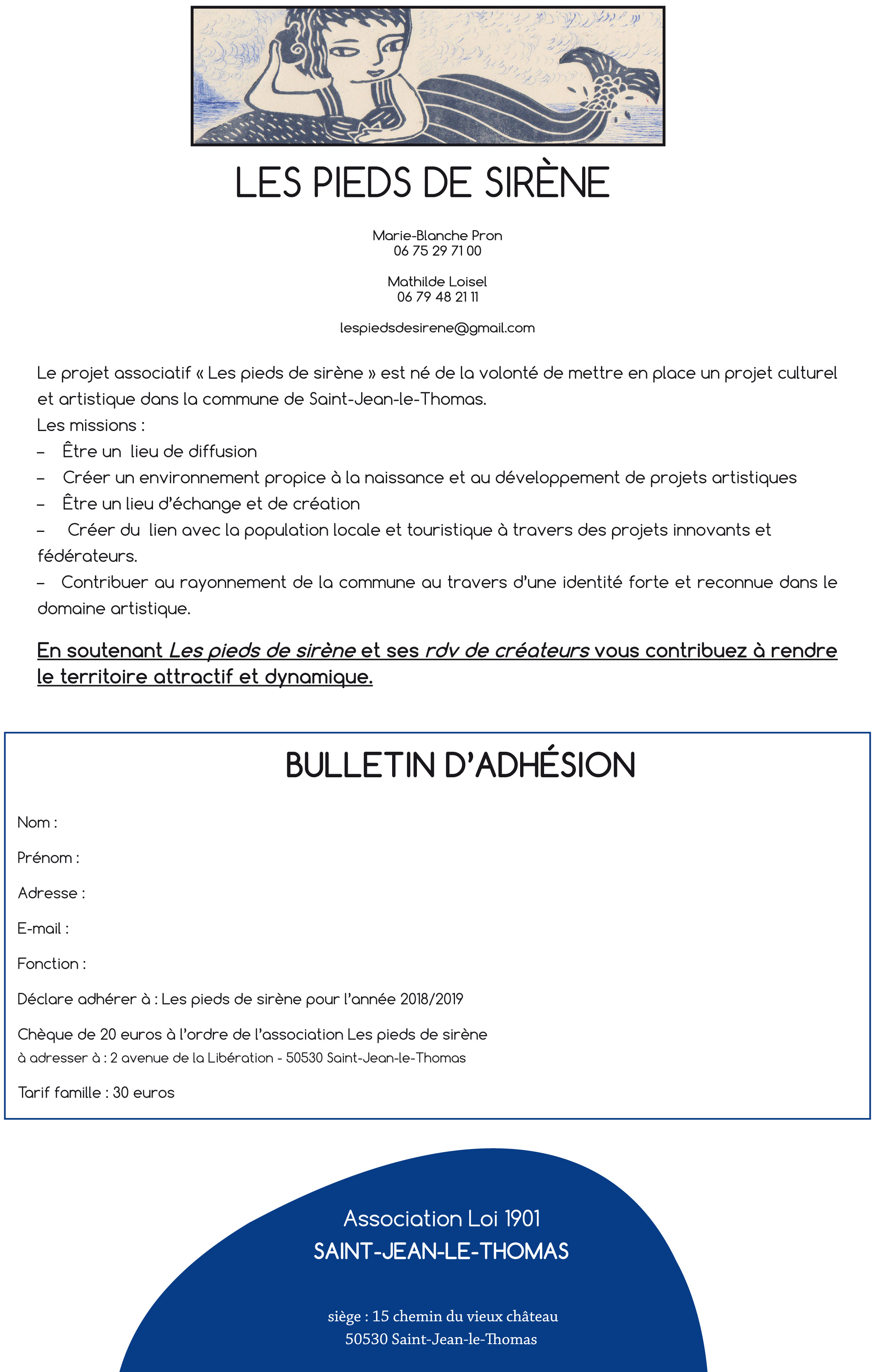 le projet associatif « Les pieds de sirène » est né de la volonté de mettre en place un projet culturel et artistique dans la commune de Saint-Jean-le-Thomas.