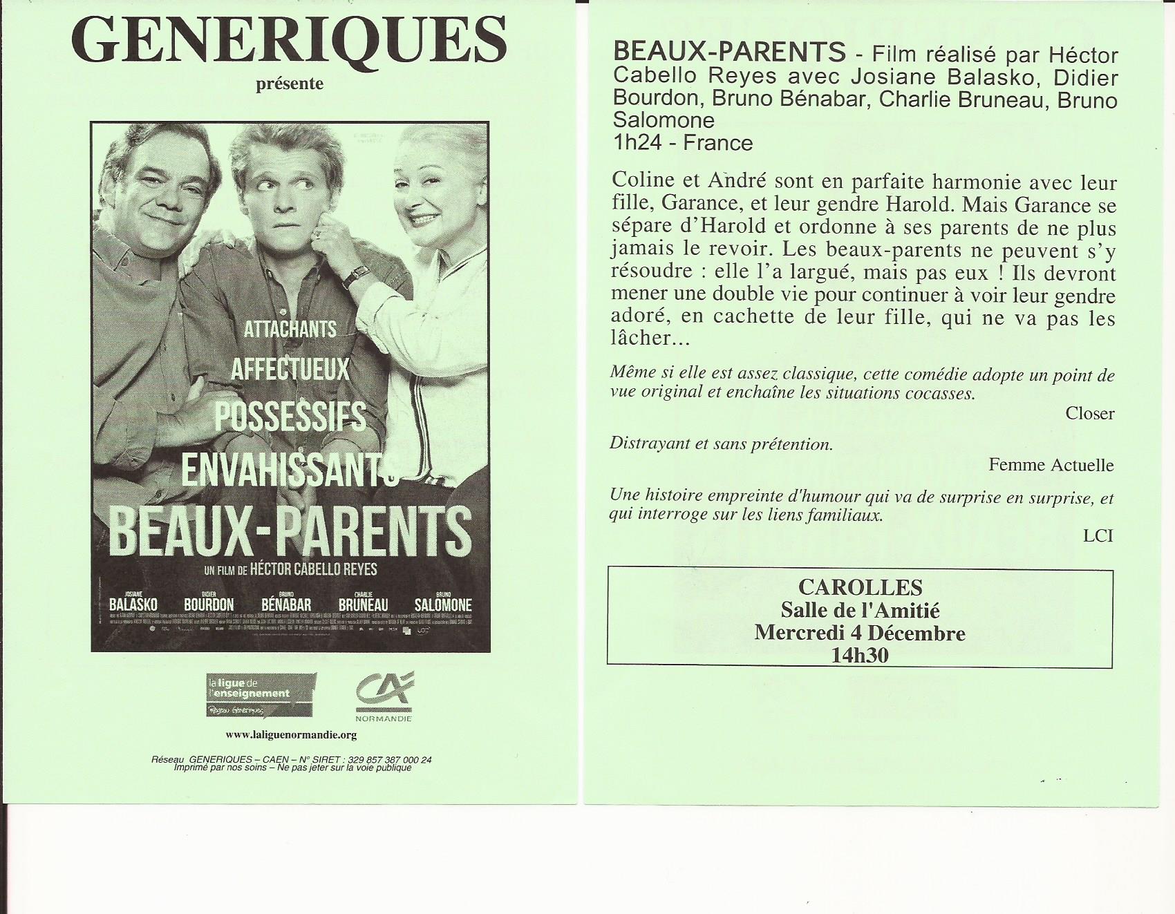 Carolles : cinéma "Beaux parents"
