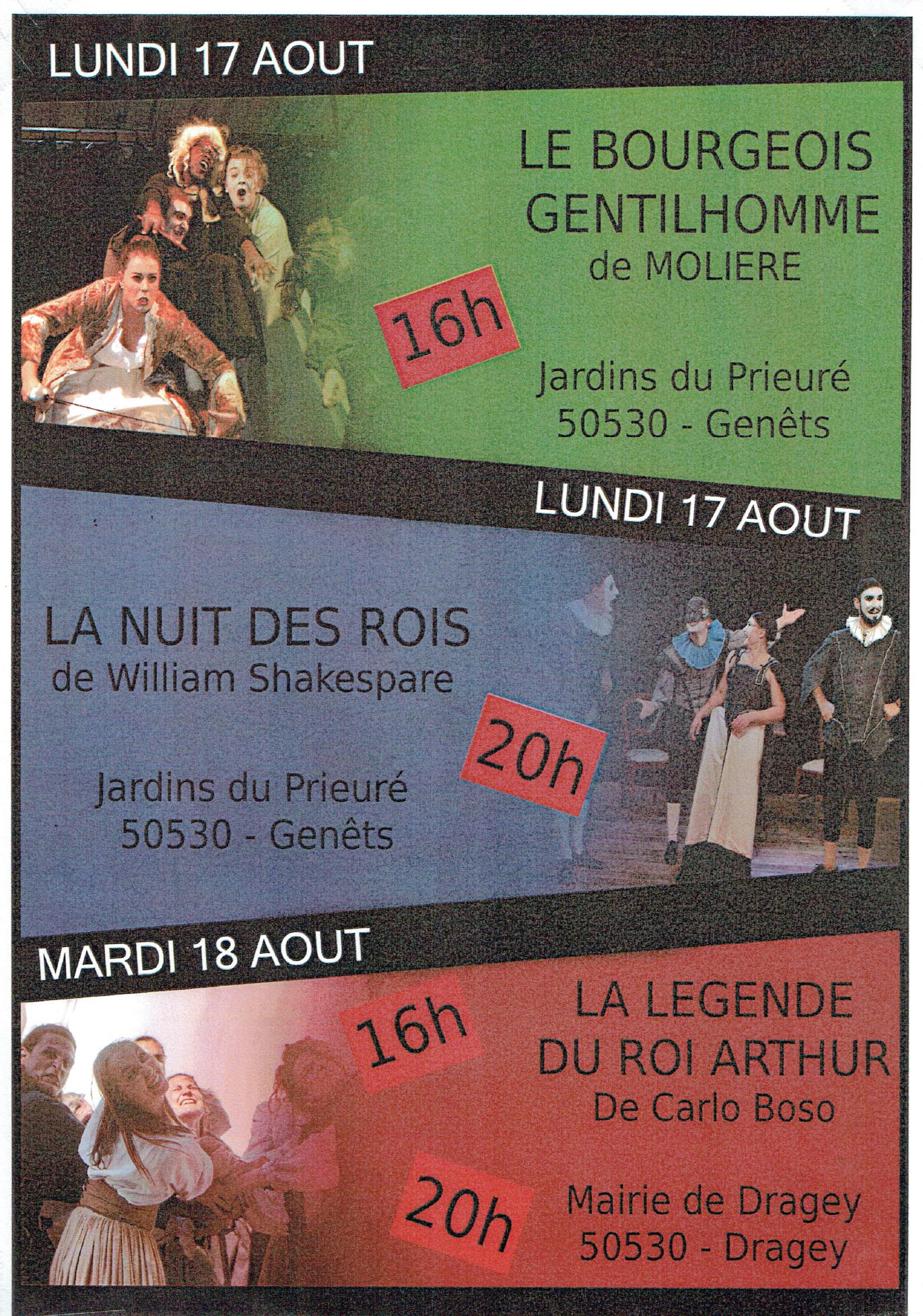 Deux représentations théâtrales de la pièce "La légende du roi Arthur" de Carlo Buso auront lieu à Dragey le 18 août, l'une à 16h, l'autre à 20h.