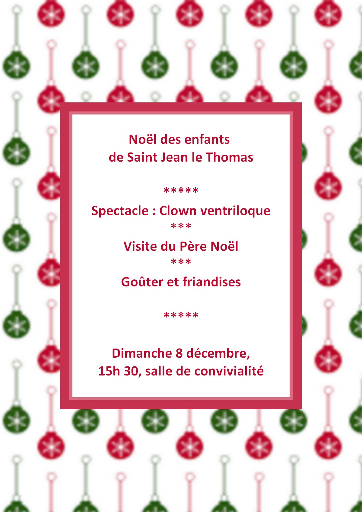Les enfants et les ainés de la commune se retrouveront avec plaisir, pour fêter noël avant l'heure, autour d'un spectacle de cirque et d'un goûter accompagné de friandises.