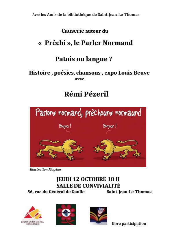 Les amis de la bibliothèque de Saint-Jean-Le-Thomas vous invitent à une causerie sur le parler normand animée par Rémi Pézeril, grand défenseur de la langue normande.