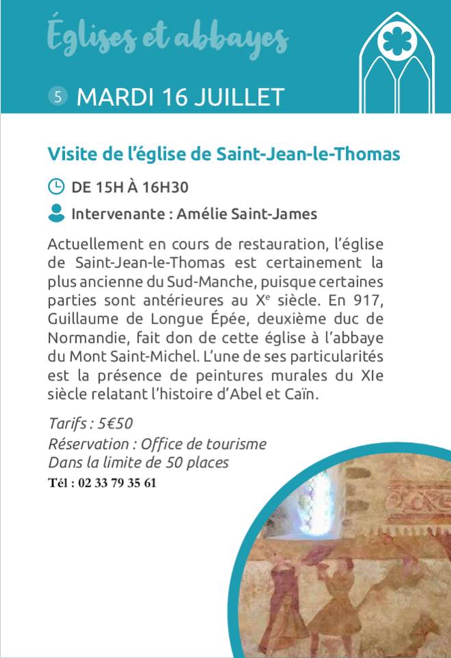 Tarif : 5,50 € Réservation : Office Tourisme de Saint Jean le Thomas 02 33 70 90 71. Plus de détails... Cliquer l'affiche pour la consulter. |